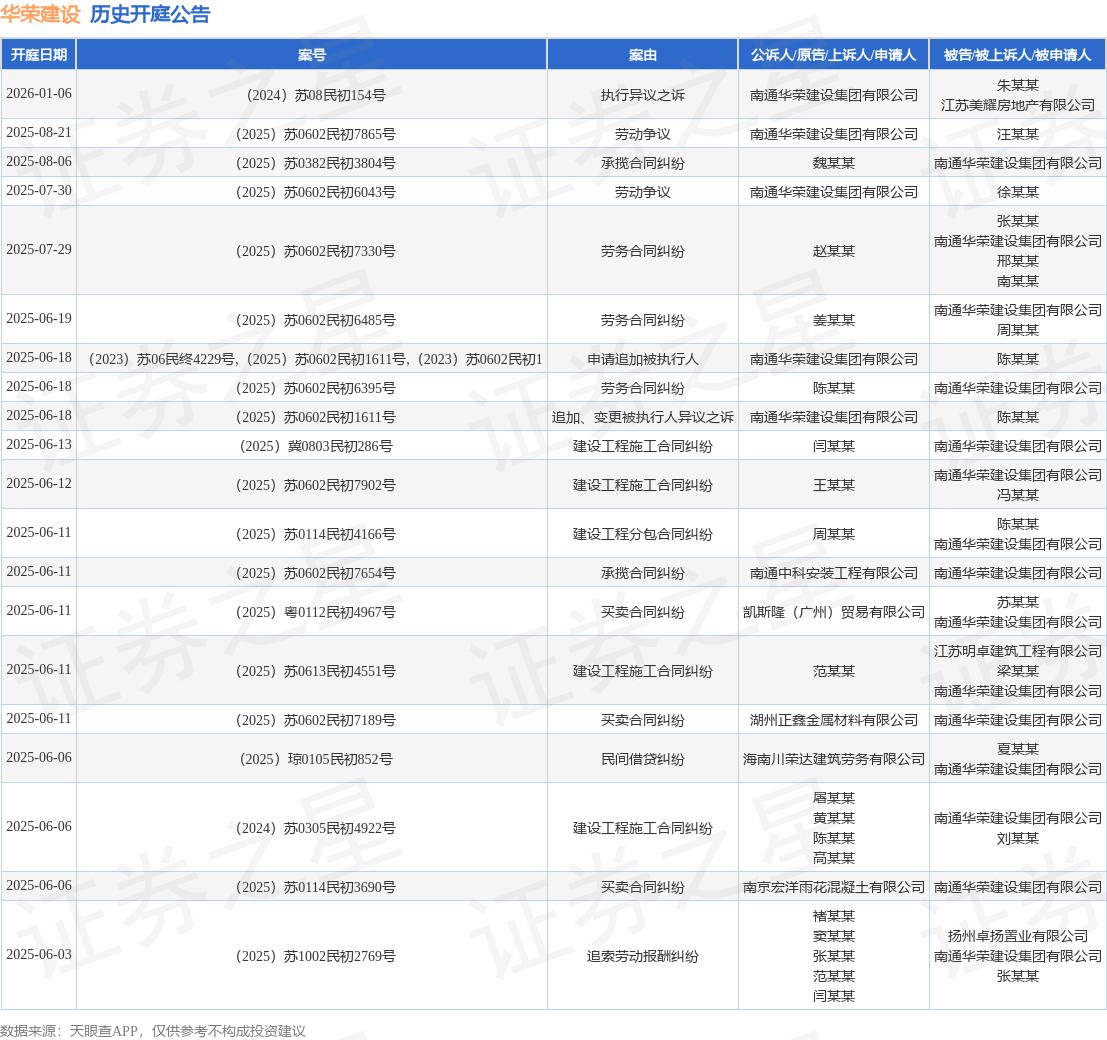 本站消息张吧策路,根据天眼查APP显示,近日公布了一则南通华荣建设集团有限公司作为被告/被上诉人的开庭公告,详细内容如下: